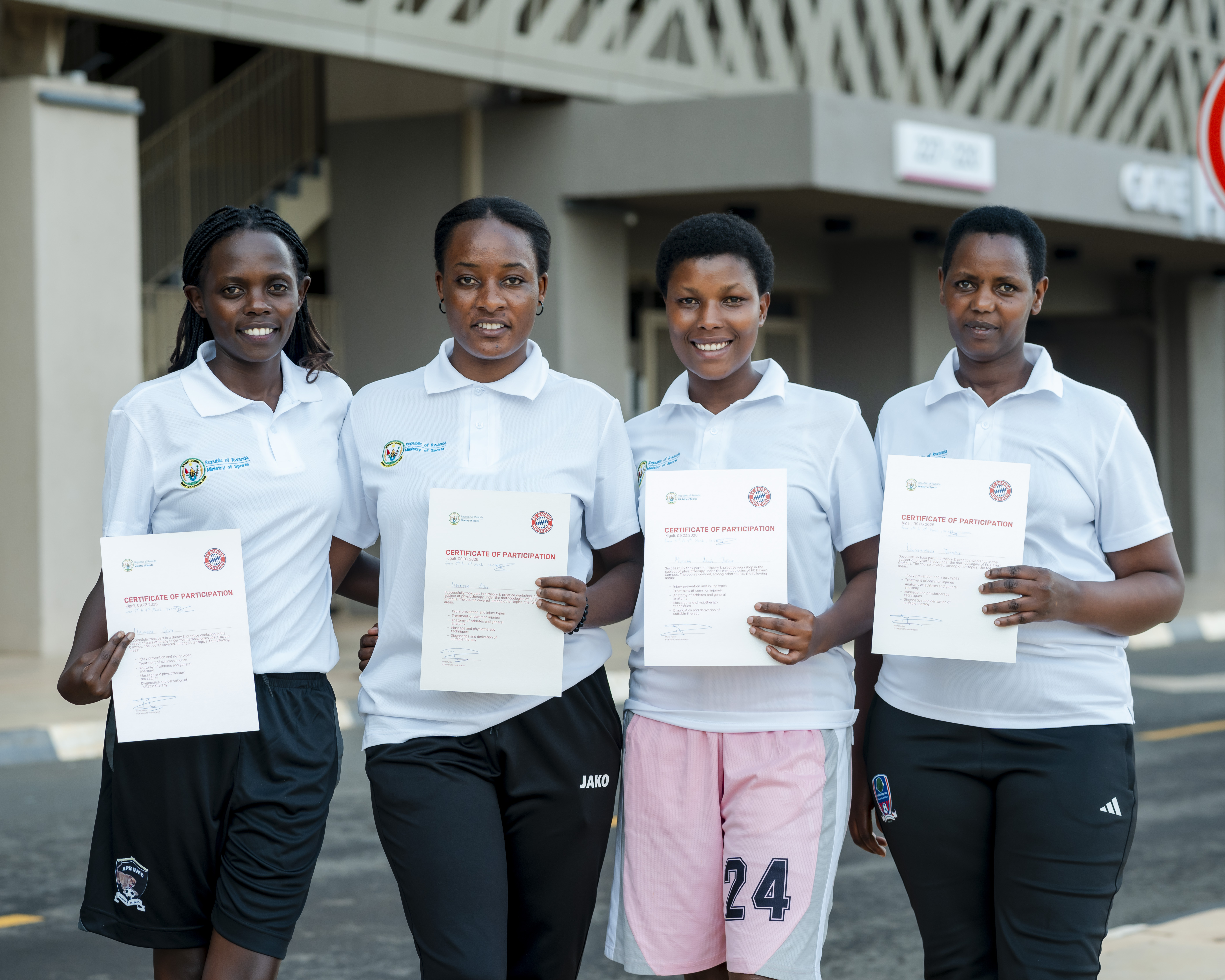 At Kagarama Secondary School in Kicukiro, Minister Nelly Mukazayire, alongside Mattias Grafström, FERWAFA President Fabrice Shema, and Stéphane Le…